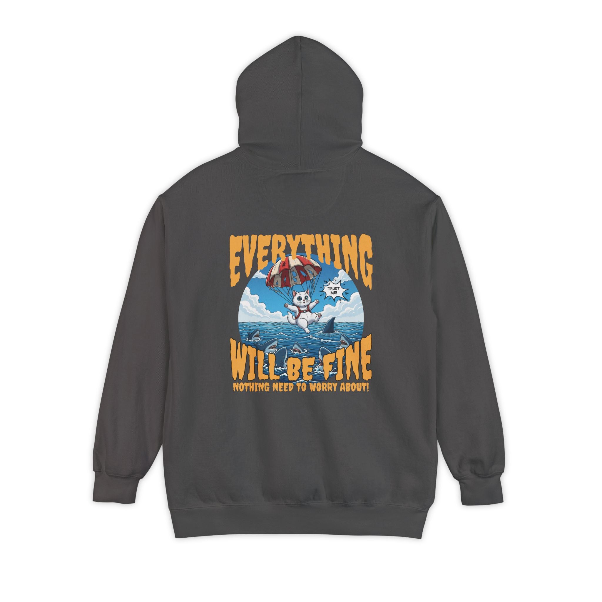 Indulge in comfort with our Cartoon Cat Unisex Pullover Hoodie. Crafted from 80% ringspun cotton and 20% polyester, this heavyweight 9.5 oz garment-dyed hoodie offers a cozy embrace. The bold vintage-inspired landscape print on the back adds character, while the hood, ribbed cuffs, and hem provide warmth and style. Features include jersey-lined hood, self-colored drawstrings, twill neck tape, and half-moon back patch for durability. Perfect for slow mornings, long drives, or a comforting reminder on busy days.
