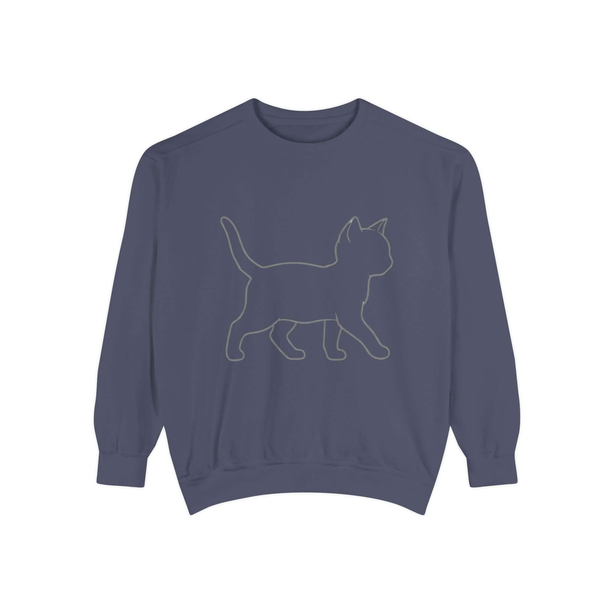 Cozy Cat Shadow Graphic Casual Crewneck Sweatshirt