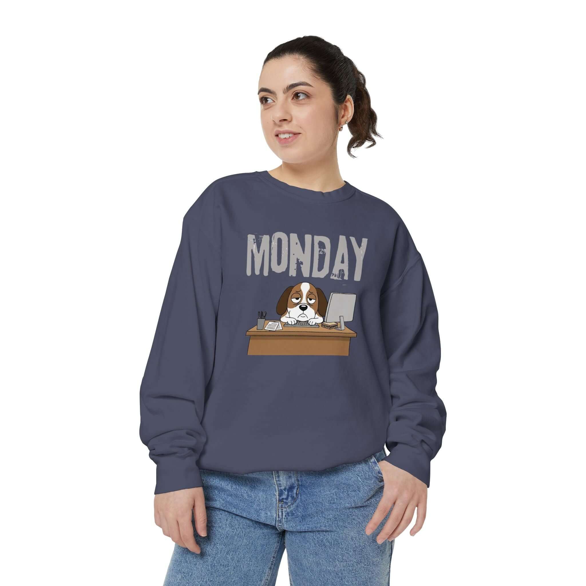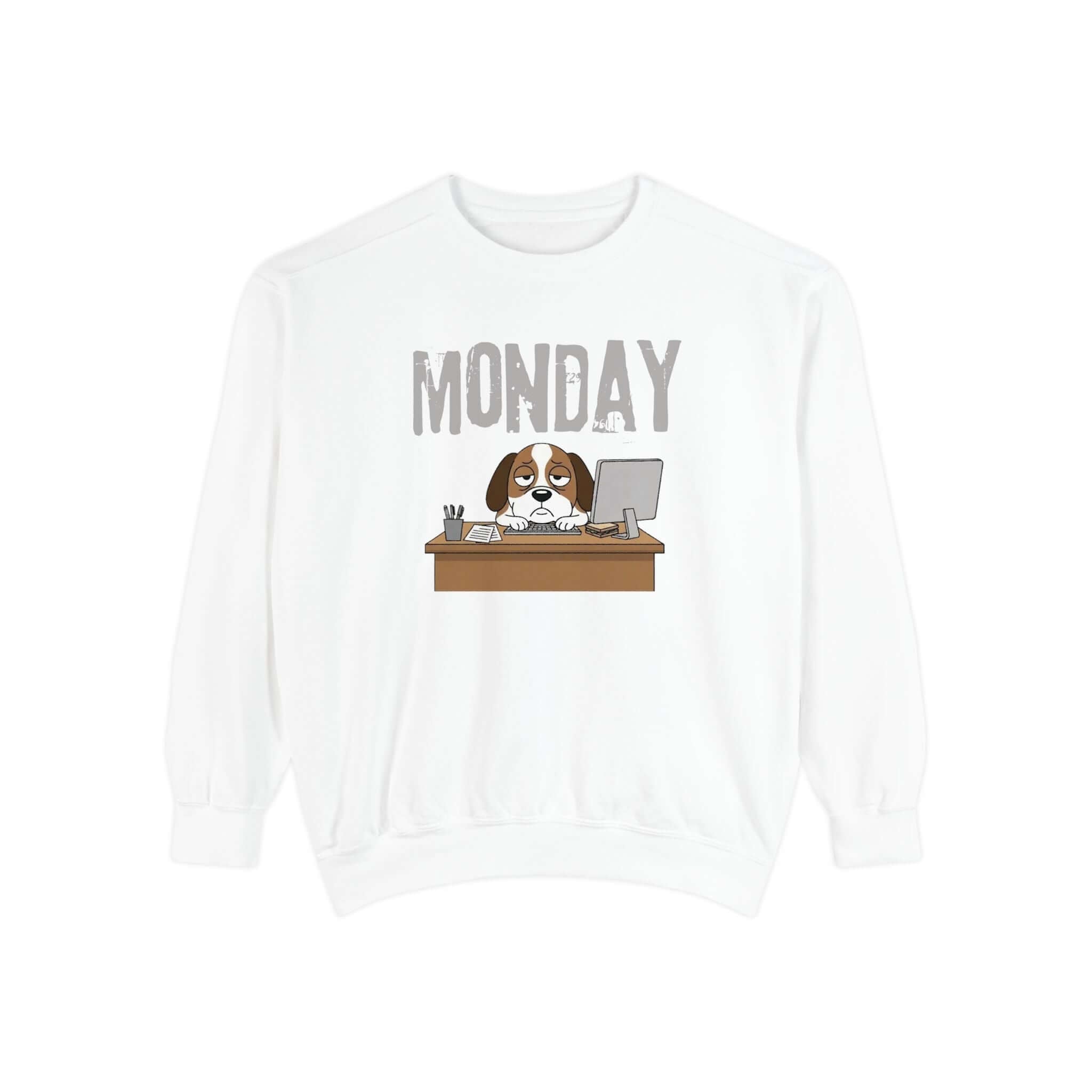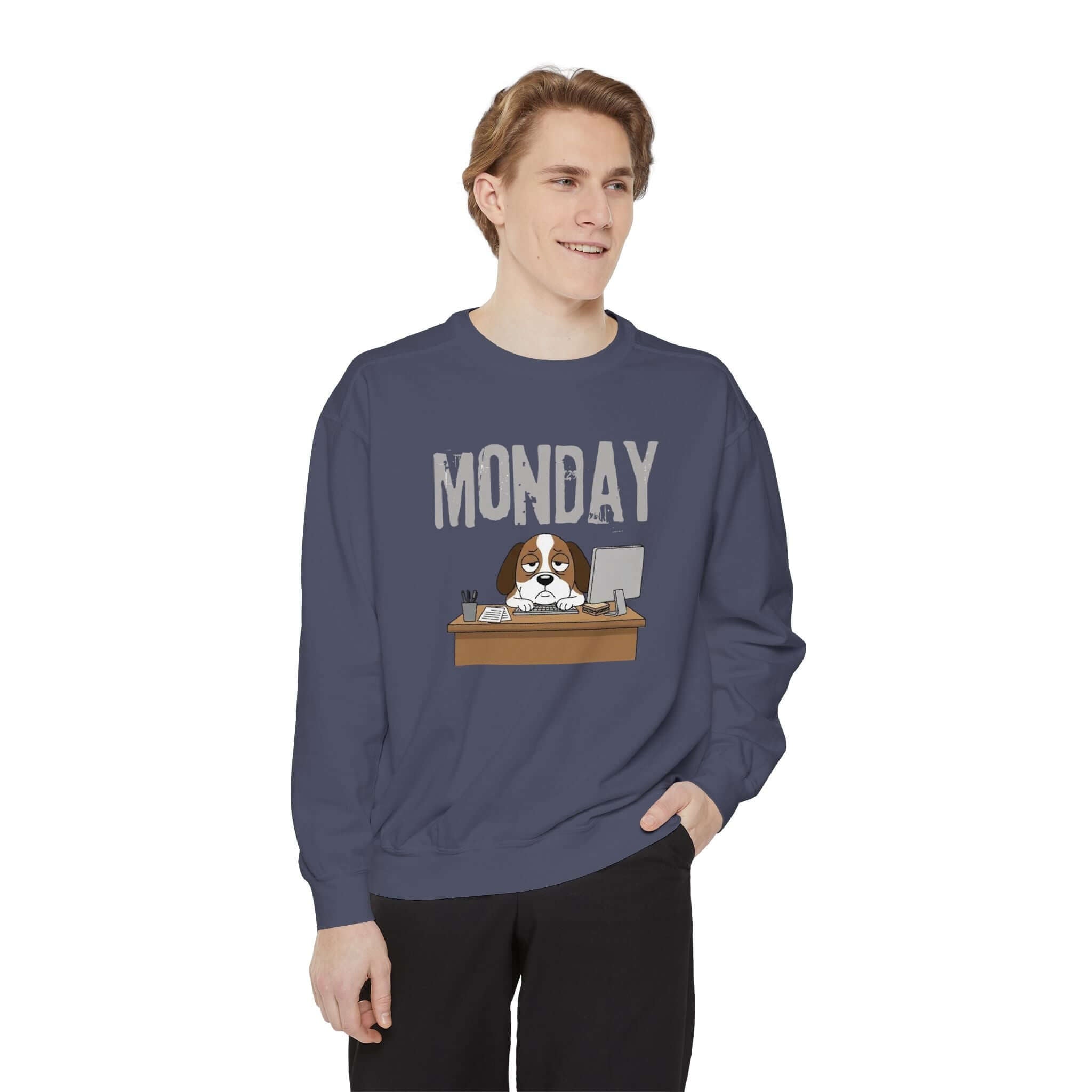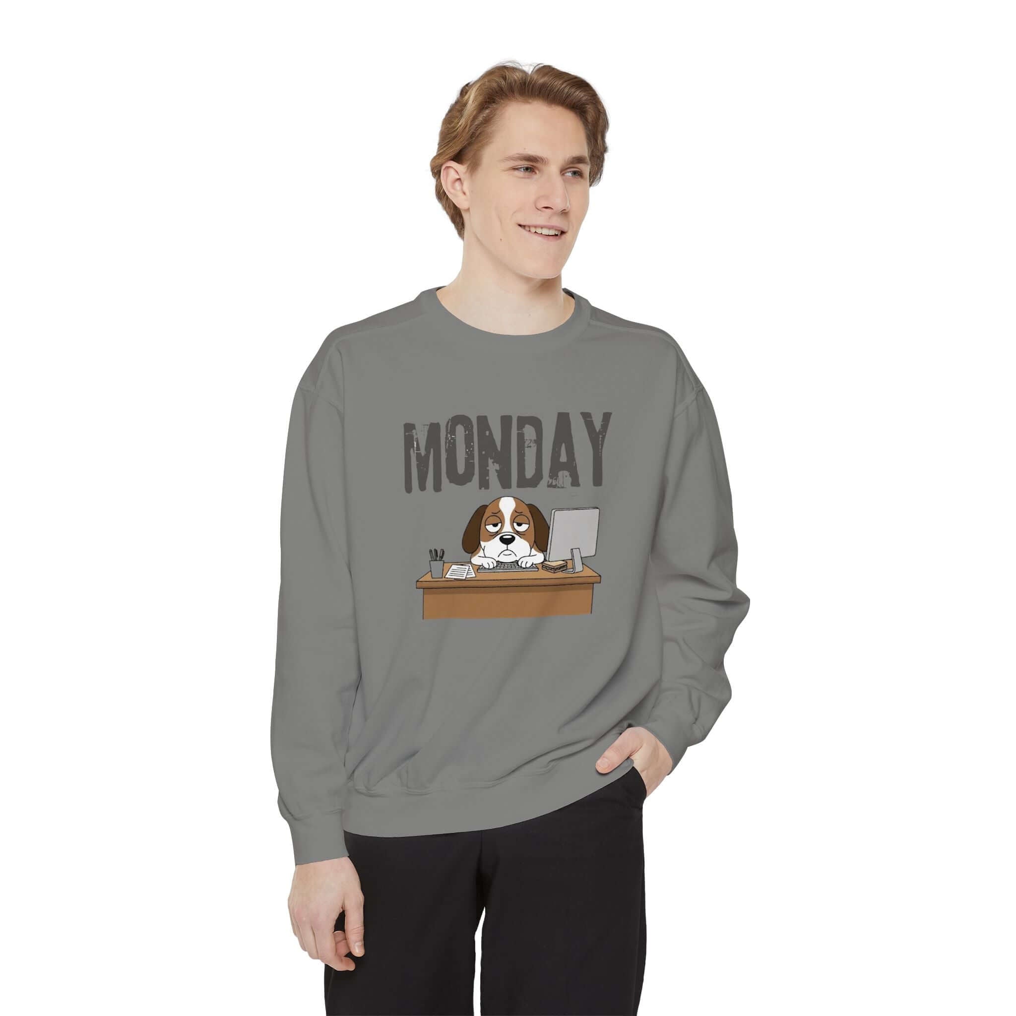 Embrace your Monday mood with our Dog Face Monday Unisex Crewneck Sweatshirt in Chalky Mint. This relaxed-fit sweatshirt offers a soft, lived-in feel perfect for cozy mornings or casual days. Featuring a dog staring blankly under a stamped “MONDAY” banner, the subtle OEKO-TEX dyed color and optional chest embroidery add thoughtful details. Crafted from 80% ring-spun cotton and 20% polyester blend, this medium-heavy fabric sweatshirt ensures a comfortable fit. It includes 1×1 ribbed collar, cuffs, and hem for stretch-and-recovery fit, as well as sewn-in twill neck tape and a half-moon back patch for stability and comfort. Show off your style with this durable and stylish sweatshirt. Available in a range of sizes. Care instructions: Machine wash cold, non-chlorine bleach when needed, tumble dry on low heat, do not iron, do not dry clean.