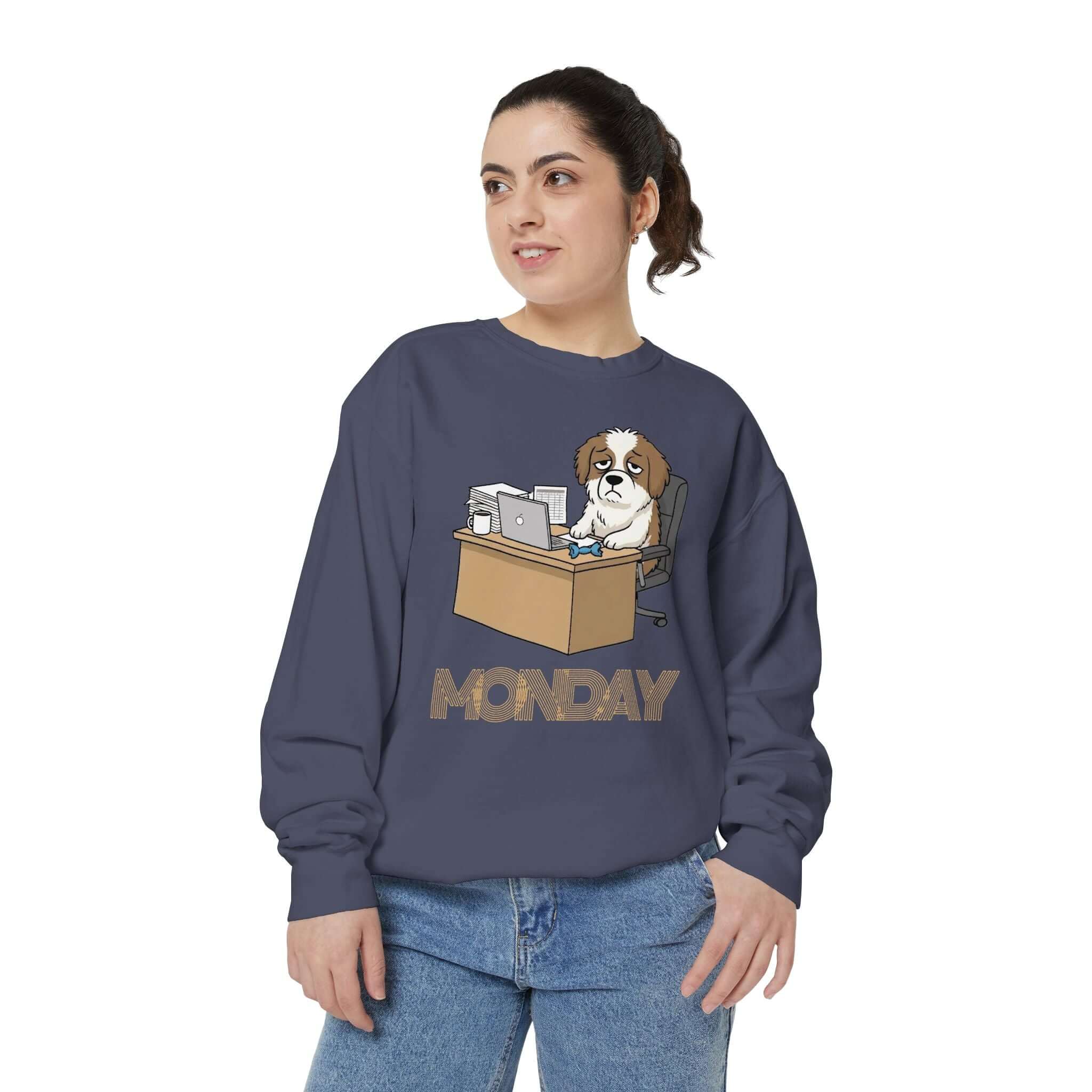 Stay cozy and stylish with our Dog Face Monday Unisex Long Sleeve Sweatshirt, featuring a relaxed fit for ultimate comfort. This sweatshirt is perfect for lazy mornings or casual outings with its soft ring-spun cotton blend, ribbed collar and cuffs for a flexible fit, and medium-heavy fabric for a luxe touch. Showcasing a funMondaydog design with optional chest embroidery, this sweatshirt is both durable and fashionable. Available in multiple sizes and colors to suit your preference. Care Instructions: Machine wash cold, non-chlorine bleach when needed, tumble dry on low heat. Avoid ironing and dry cleaning to maintain the quality. Size range to 3XL.