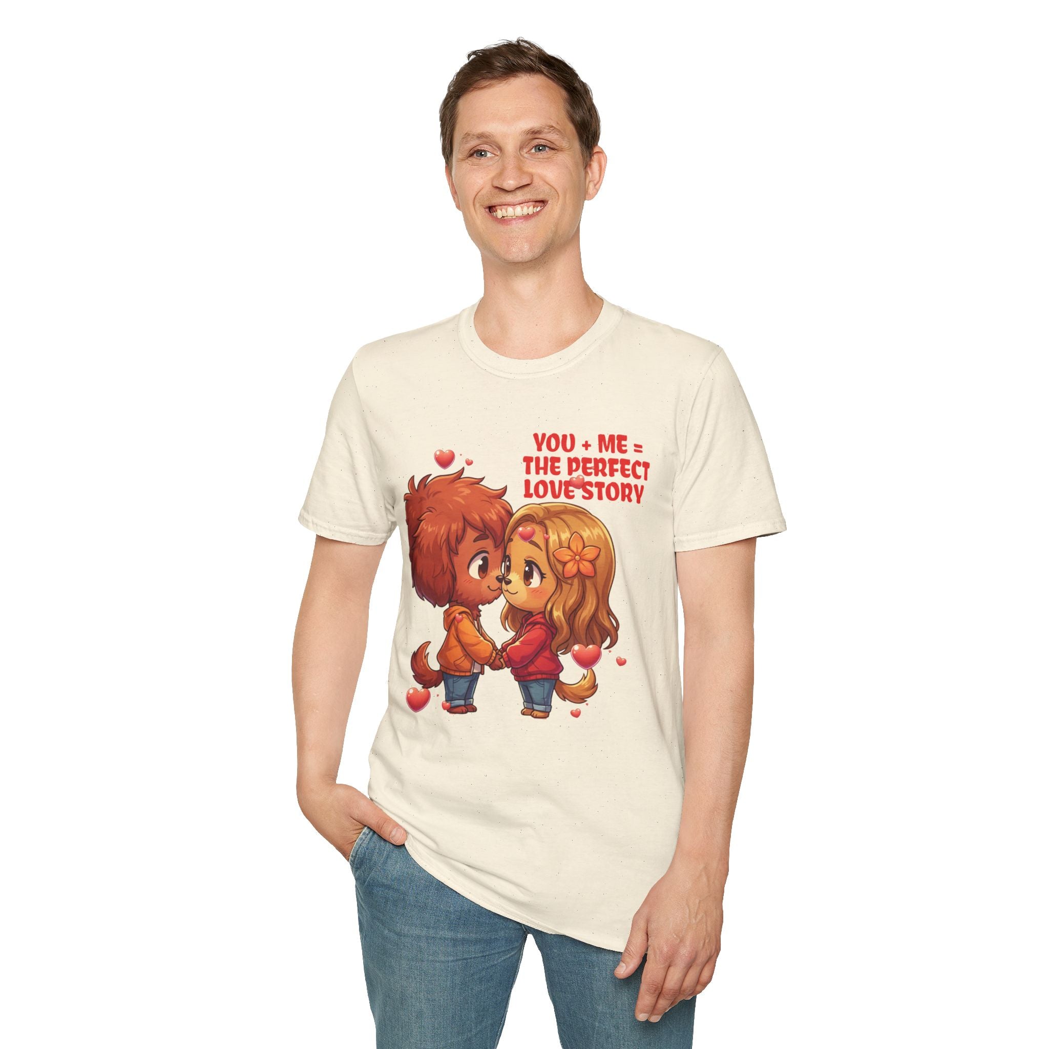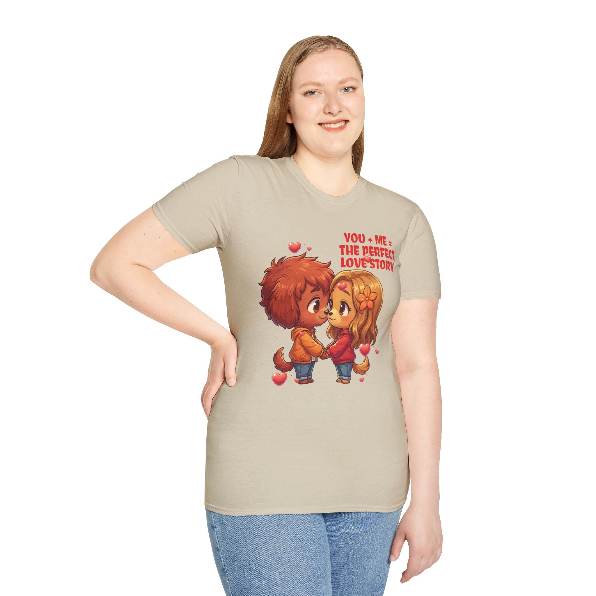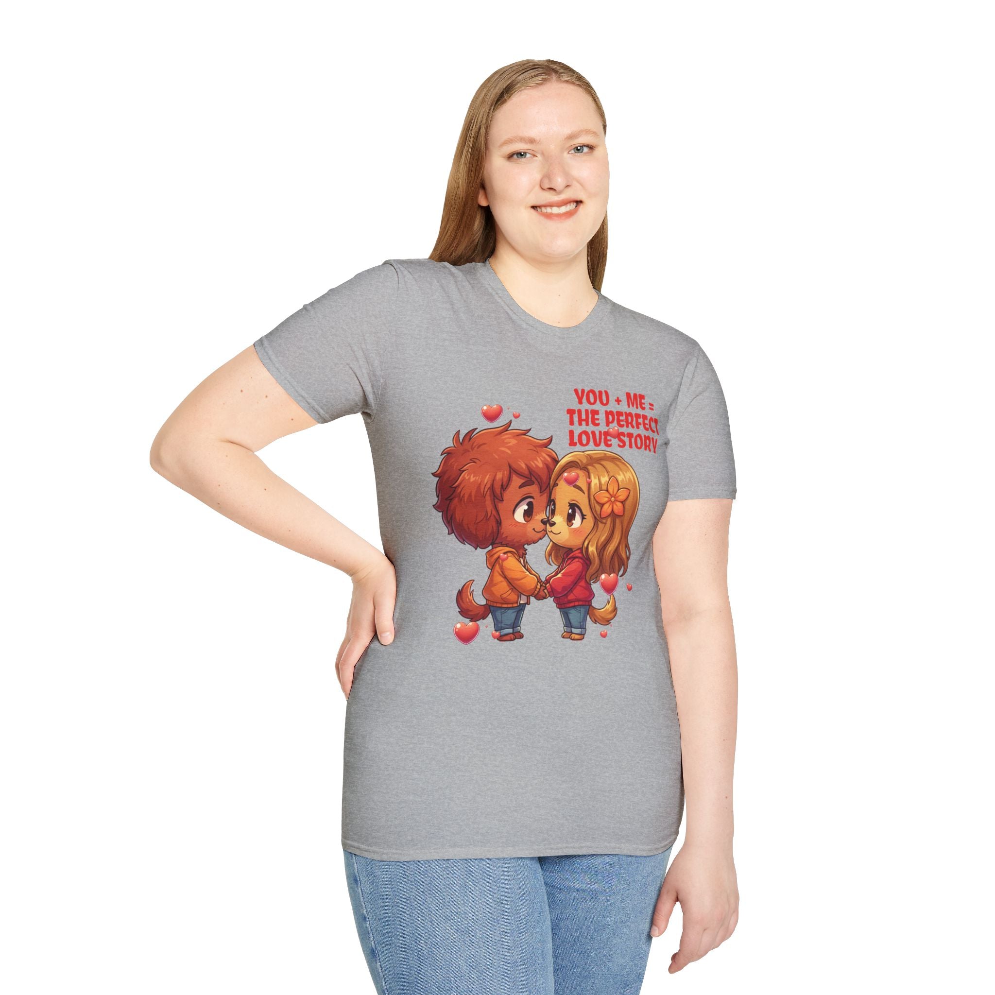 Indulge in the warmth of a love story through this cozy dog couple themed unisex tee. The delightful chibi characters holding hands evokes a sense of nostalgia and romance. Made with lightweight 100% ring-spun cotton, this tee guarantees a soft, breathable feel. The tubular knit design ensures a smooth finish, while the elastic ribbed collar maintains shape. Perfect for casual days, movie nights, or romantic outings, this tee is a playful declaration of affection that you can wear comfortably. Show your love with style and comfort. Available in sizes to 3XL.