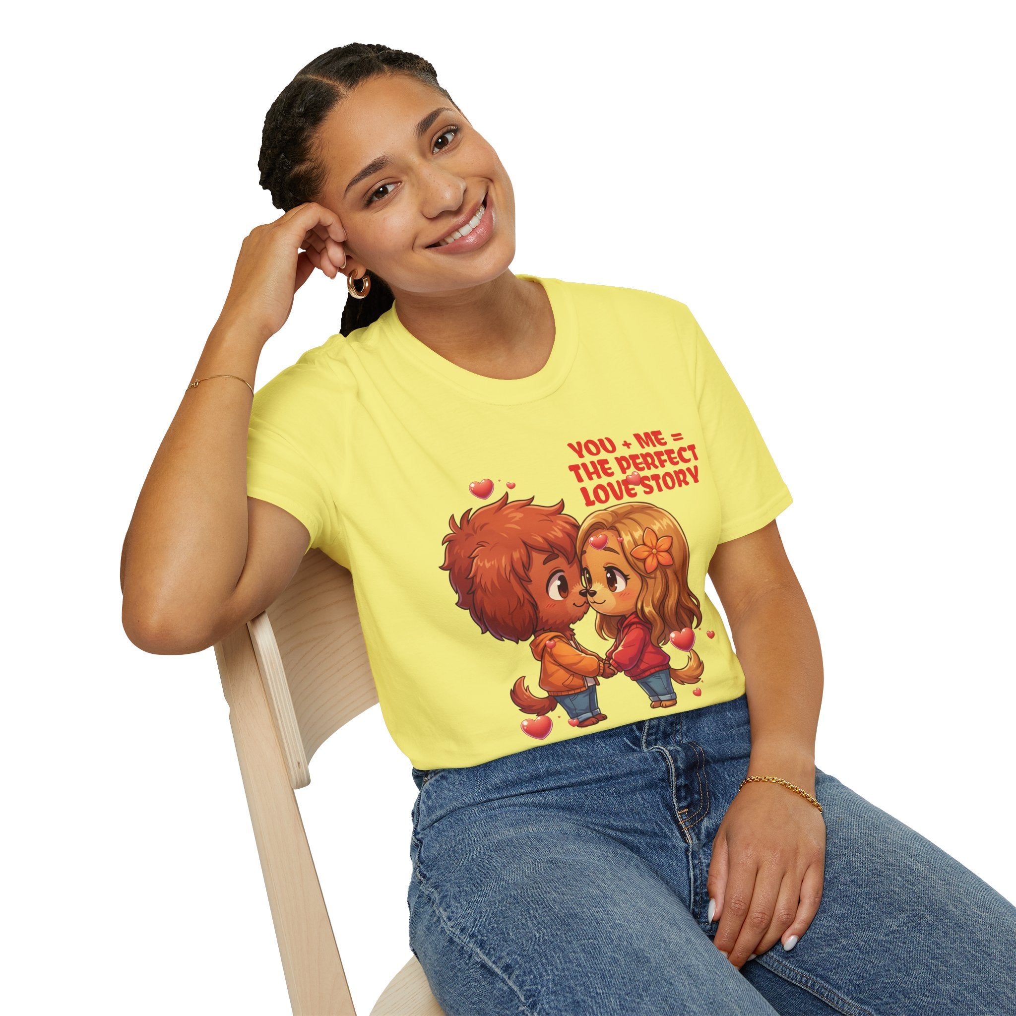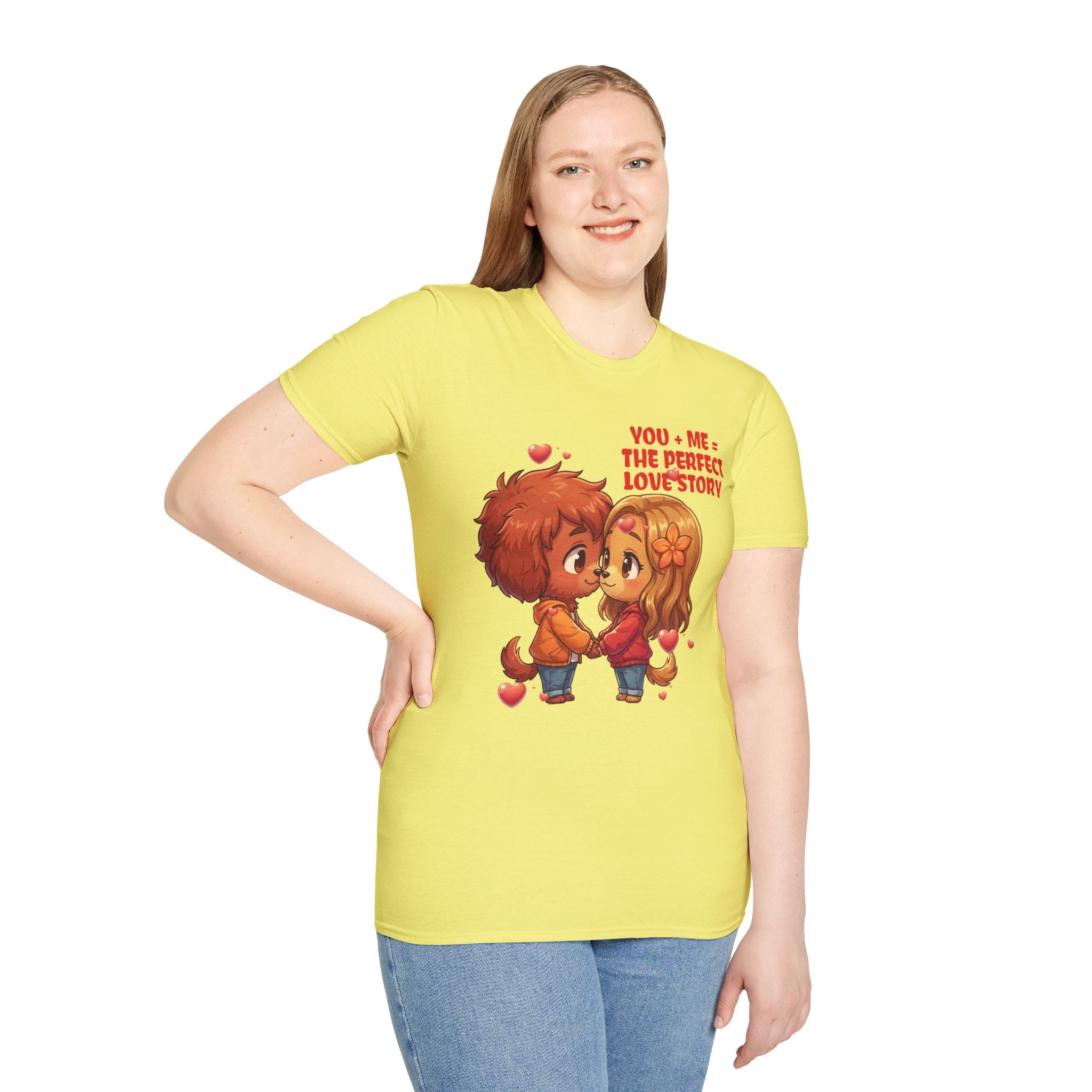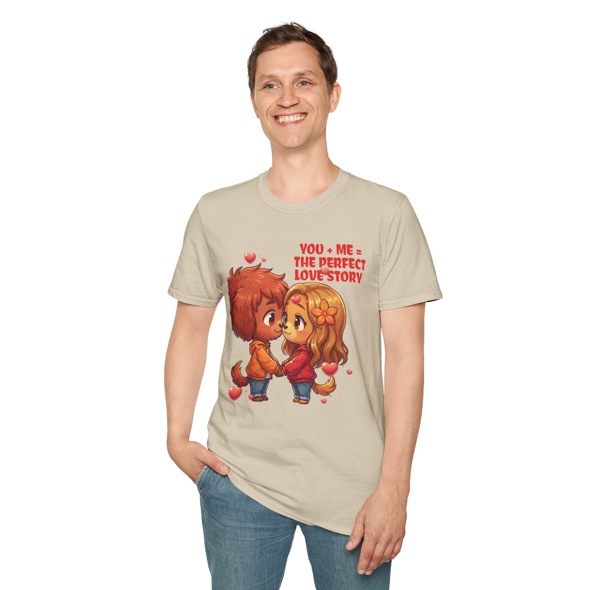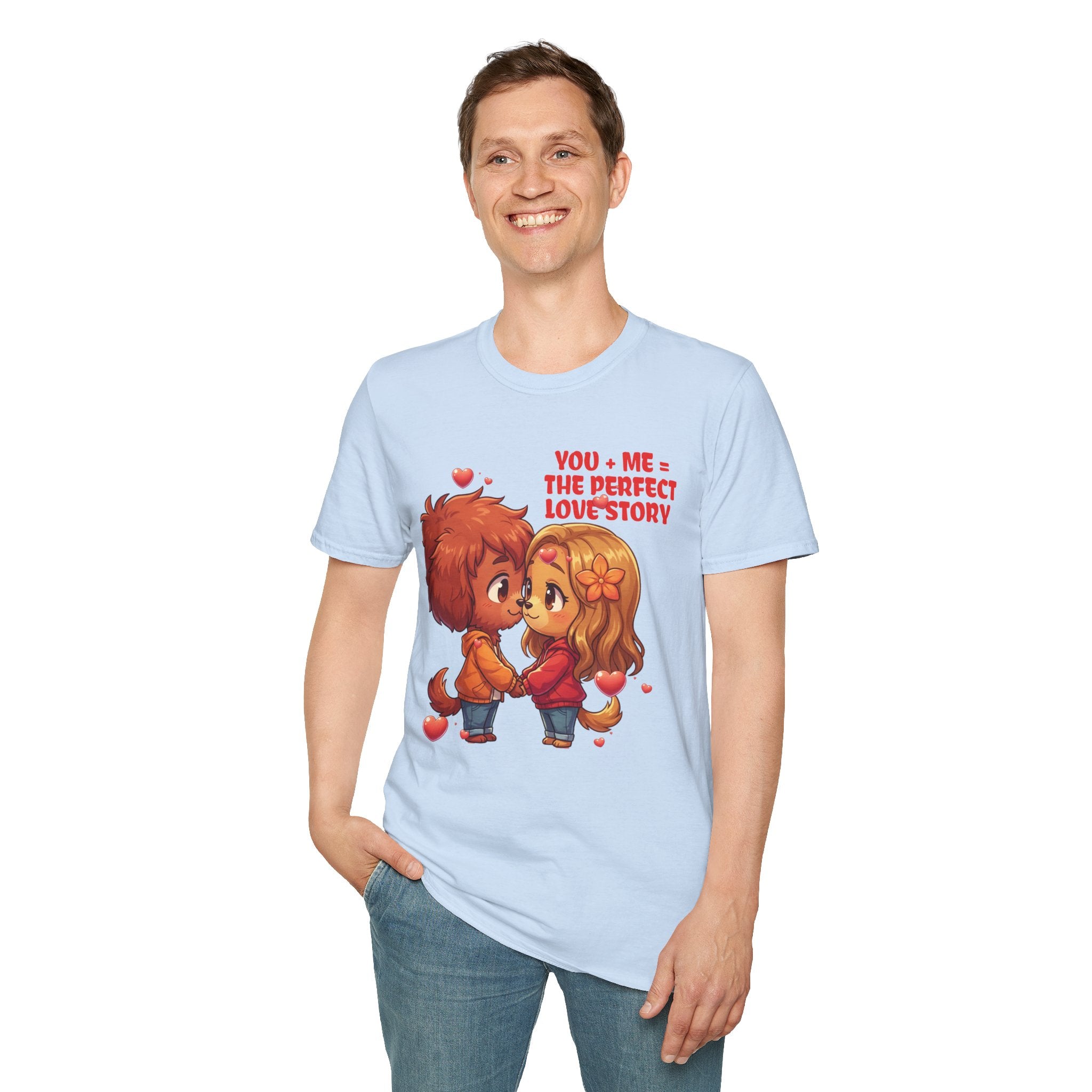 Indulge in the warmth of a love story through this cozy dog couple themed unisex tee. The delightful chibi characters holding hands evokes a sense of nostalgia and romance. Made with lightweight 100% ring-spun cotton, this tee guarantees a soft, breathable feel. The tubular knit design ensures a smooth finish, while the elastic ribbed collar maintains shape. Perfect for casual days, movie nights, or romantic outings, this tee is a playful declaration of affection that you can wear comfortably. Show your love with style and comfort. Available in sizes to 3XL.