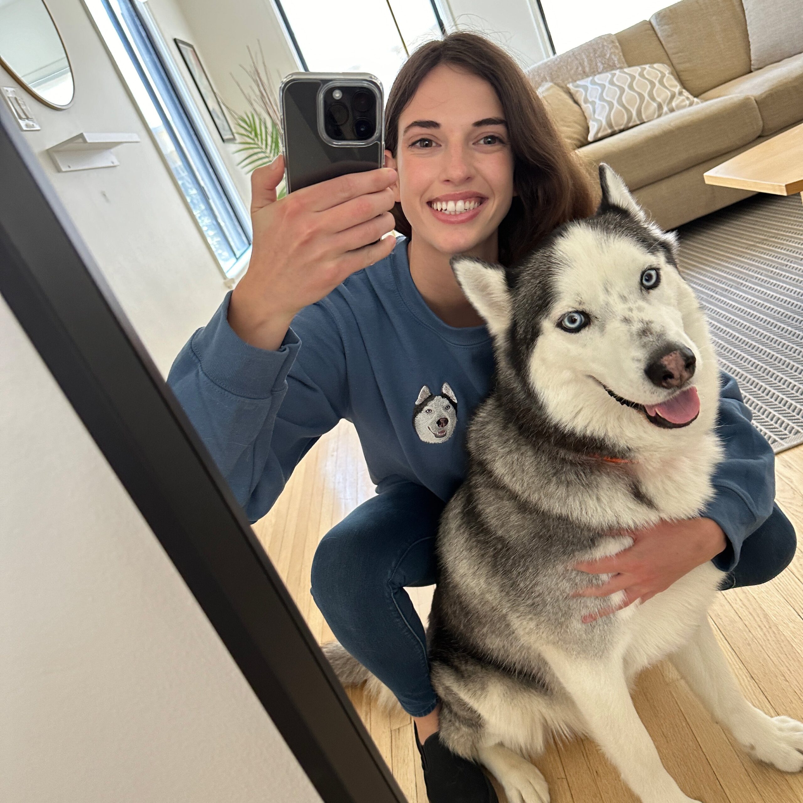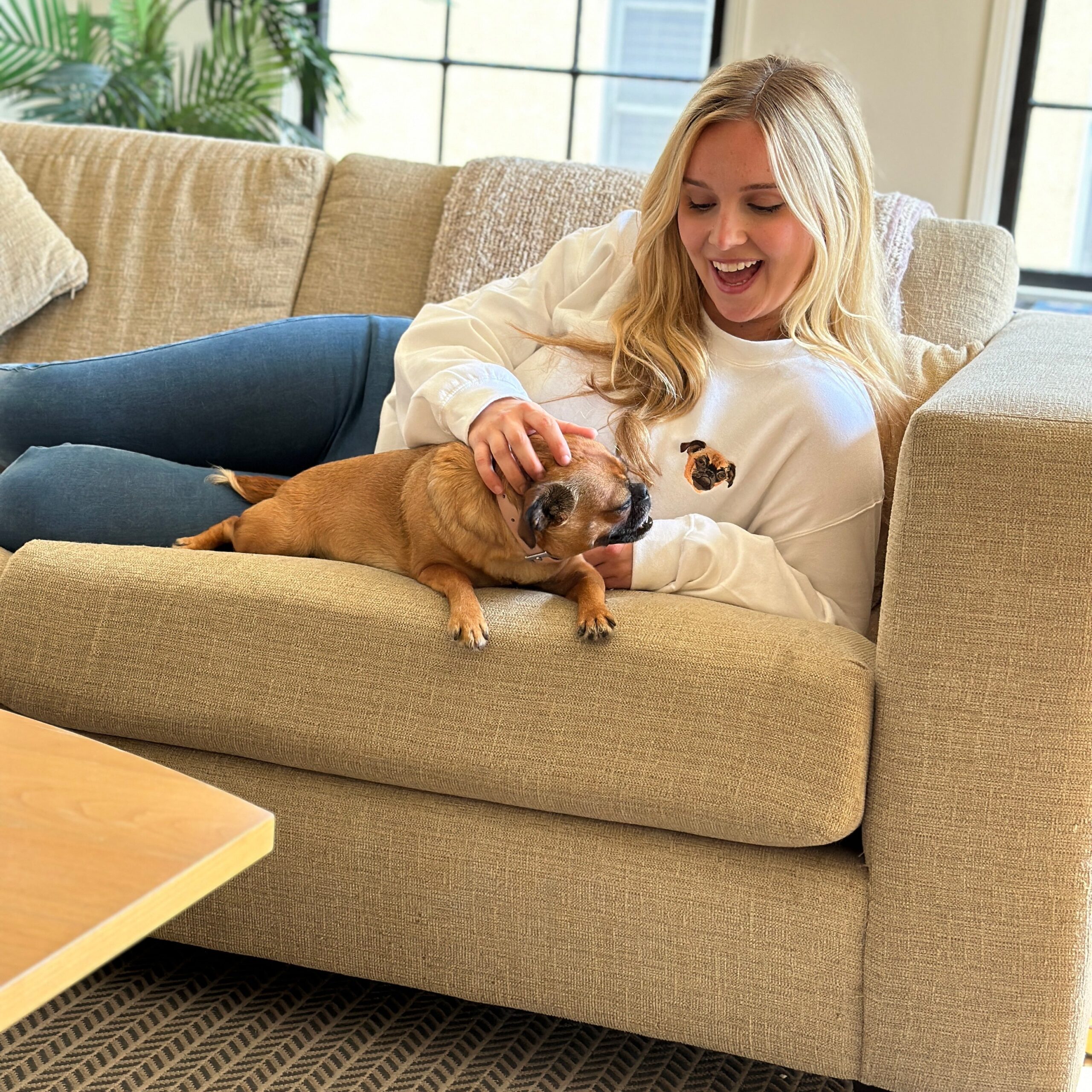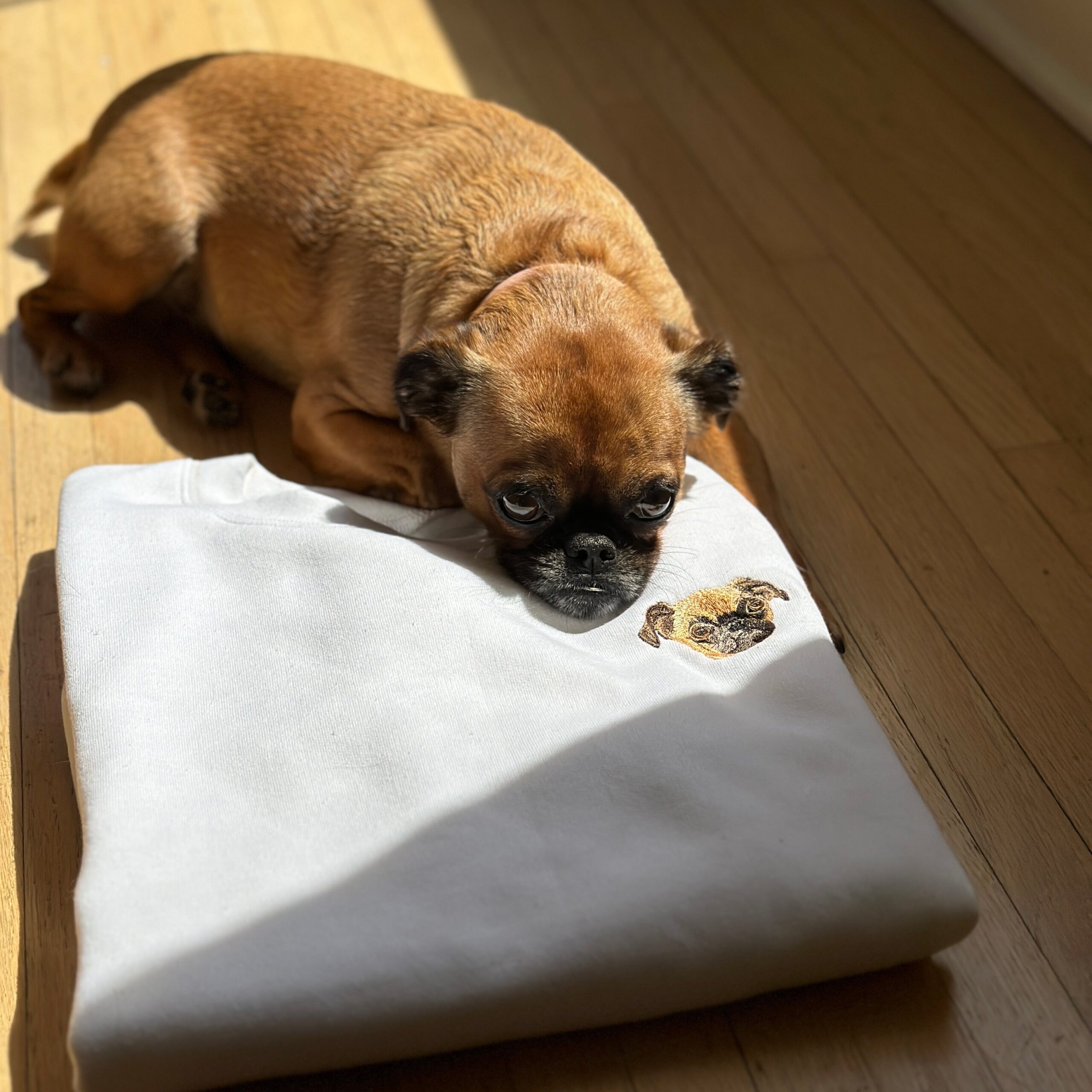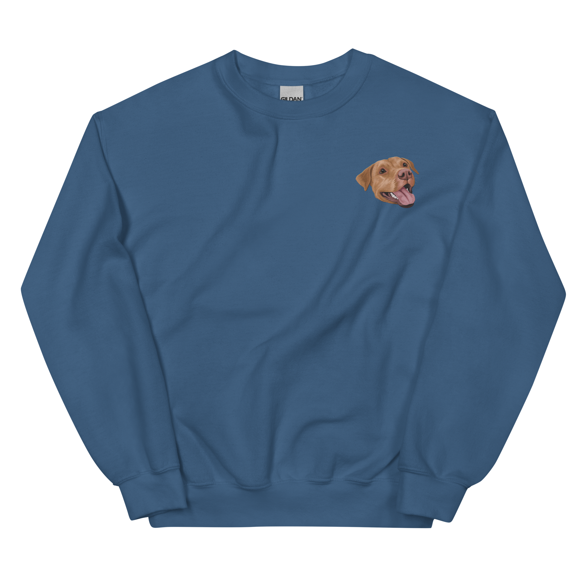 Stay cozy and stylish with this personalized embroidered crewneck featuring an illustration of your beloved pet. Upload a photo of your pet for our artists to create a custom design, then receive your unique crewneck in 2-3 weeks. This cozy crewneck is a perfect way to showcase your furry friend wherever you go.