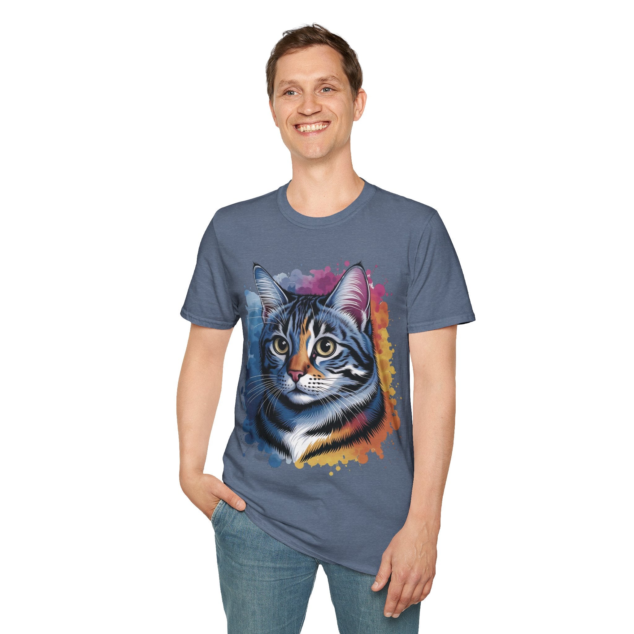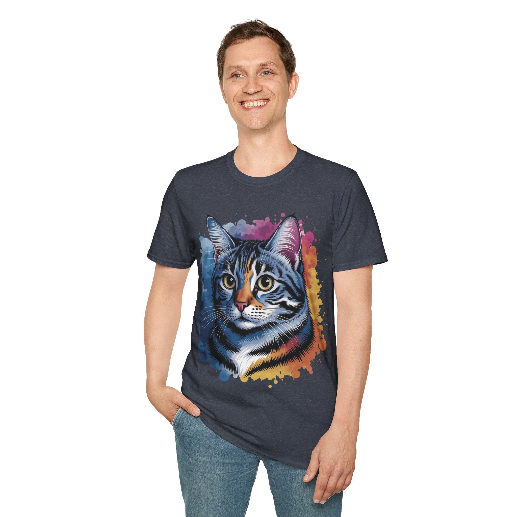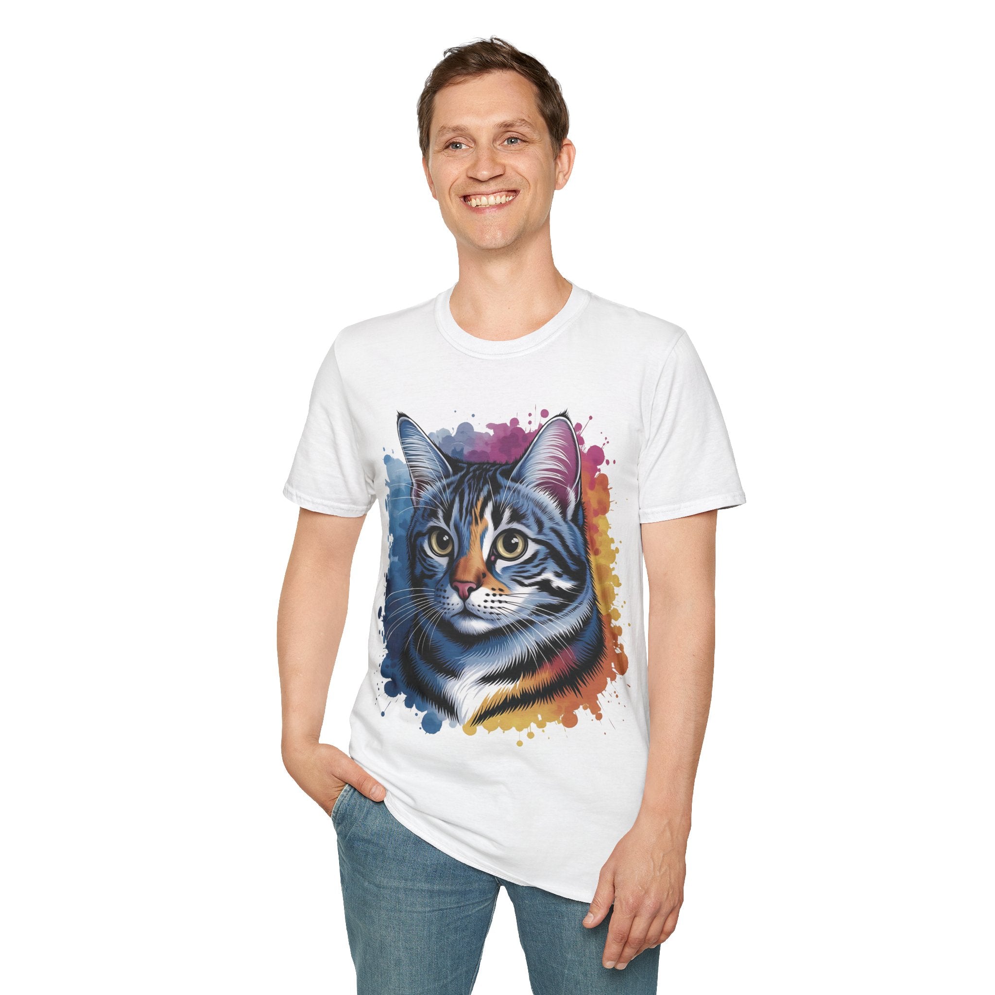 This vibrant Watercolor Cat Head Printed Unisex Cotton T-Shirt showcases a beautiful and intricate cat portrait, embodying the essence of a warm and playful feline companion. Crafted from lightweight 100% ring-spun cotton (153 g/m²), this shirt offers breathability and comfort. The tubular knit design delivers a clean silhouette with no side seams, while the ribbed collar ensures shape retention. Ideal for animal lovers and art enthusiasts, this shirt is a perfect blend of style and functionality, suited for daily wear amidst moments of simple joy and comfort. Available in a variety of sizes to accommodate different preferences. Care instructions: Machine wash cold with similar colors, tumble dry on low heat, and iron with caution. Get yours today!
