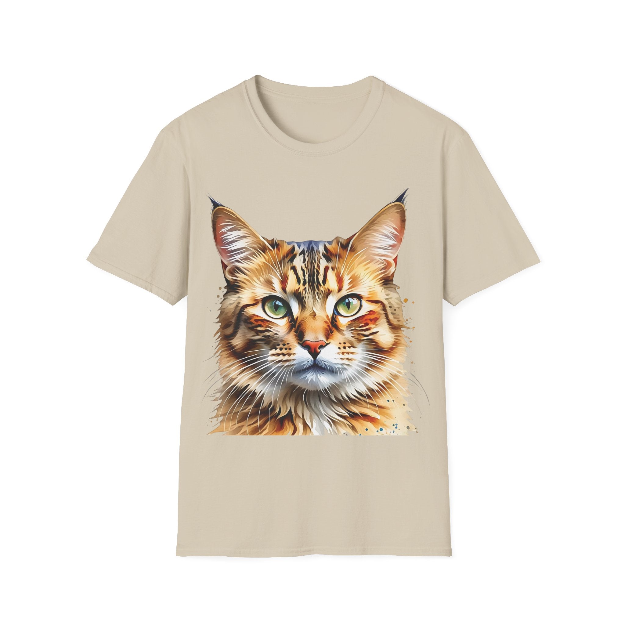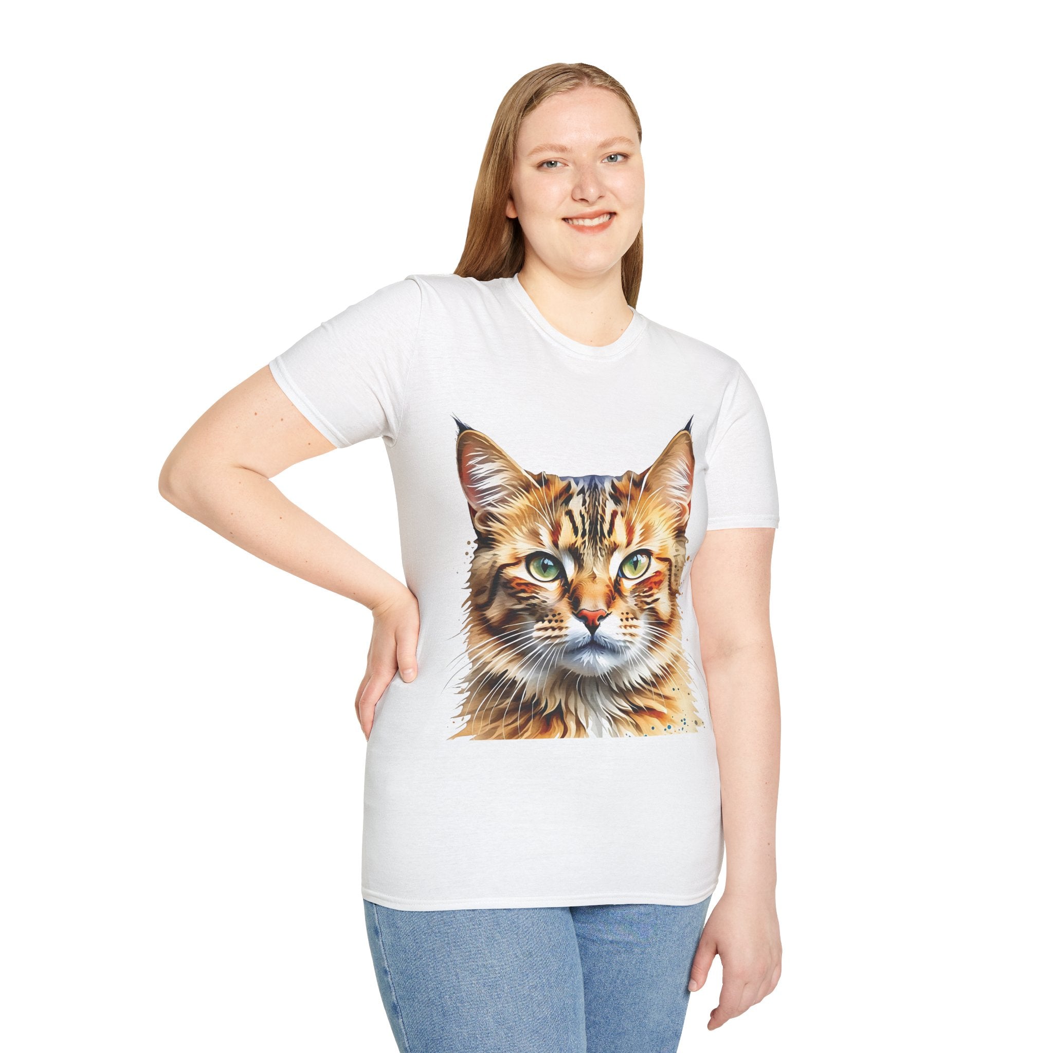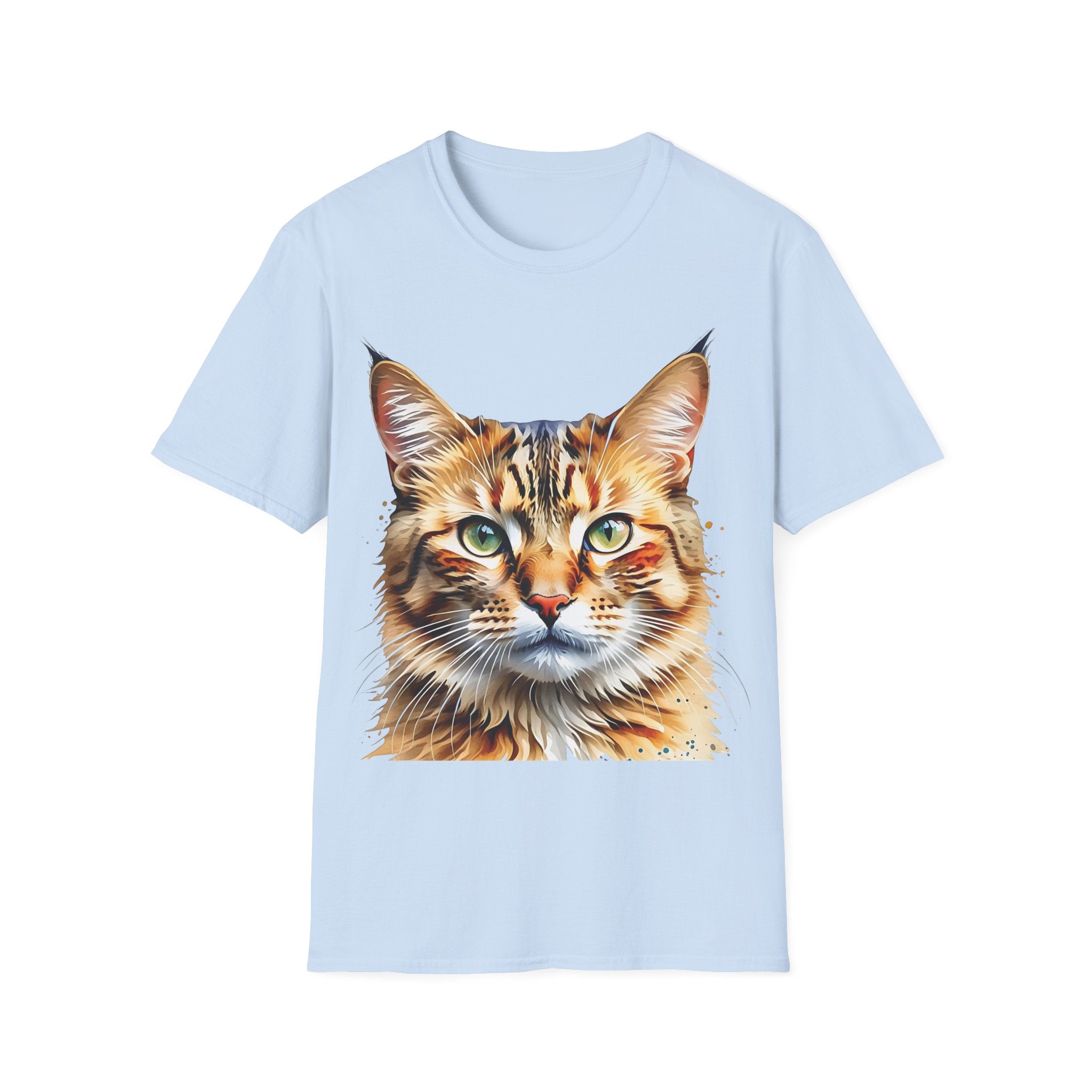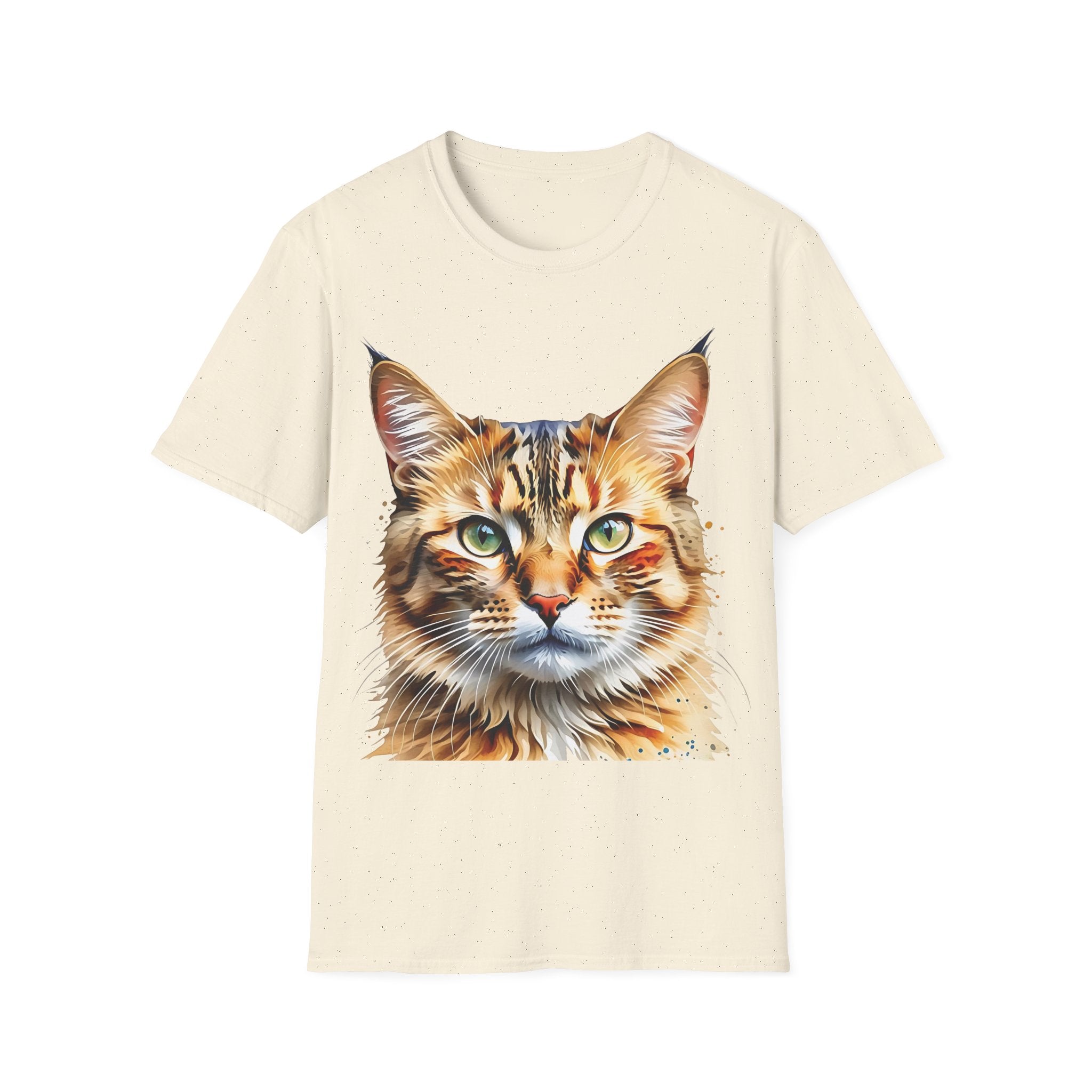 Indulge in the artistic charm of our Watercolor Cat Portrait Unisex Cotton T-Shirt. This lightweight shirt features a vivid painterly cat illustration with warm amber eyes and layered fur tones, creating a captivating effect. Perfect for animal lovers and art enthusiasts, this shirt seamlessly integrates into your daily life, invoking a sense of coziness and companionship. Crafted from 100% ring-spun cotton for a soft and breathable feel, this shirt boasts a clean silhouette, ribbed collar, and Oeko-Tex certification for comfort and safety. Wear it on various occasions, from relaxed weekends to casual outings, and make a subtle yet striking statement.