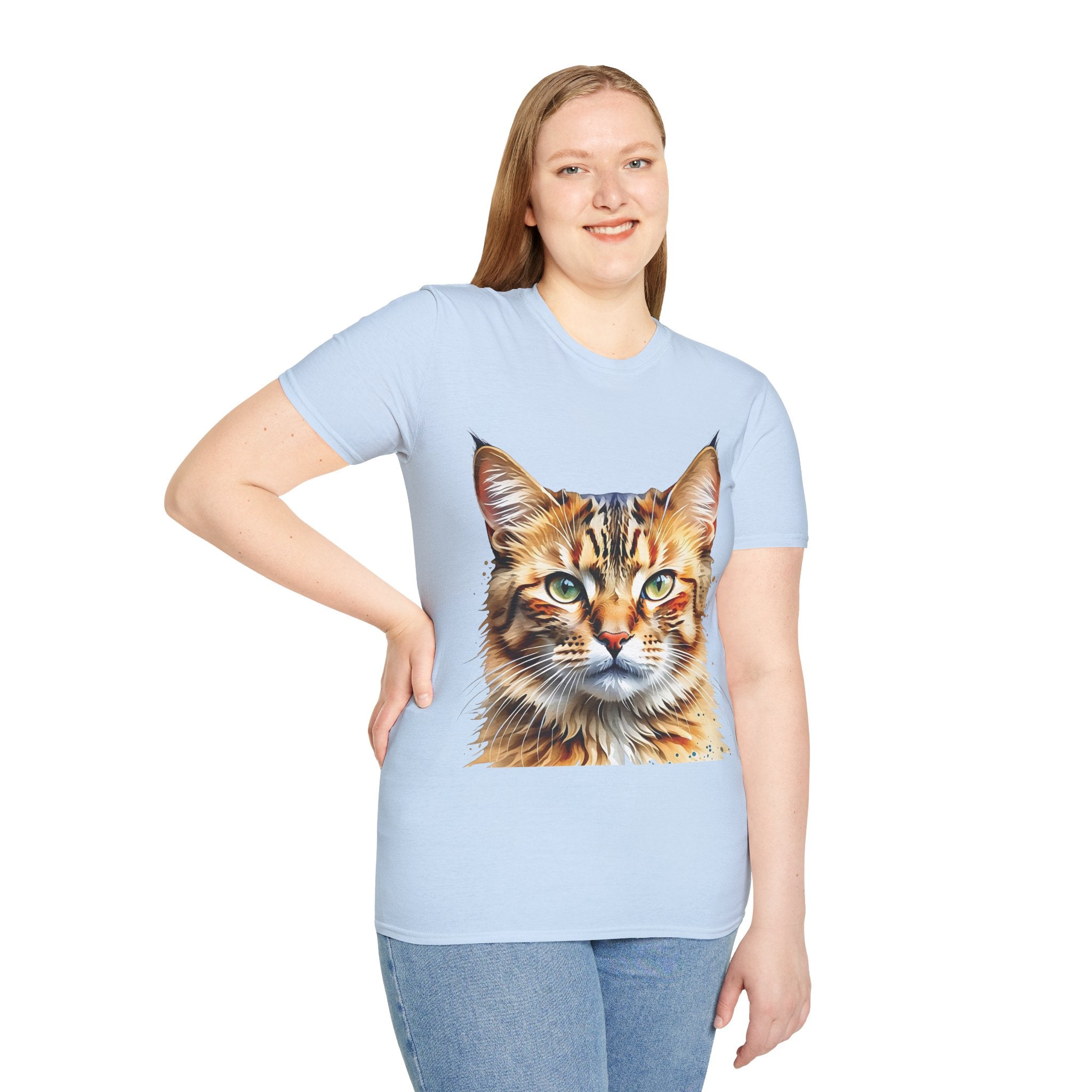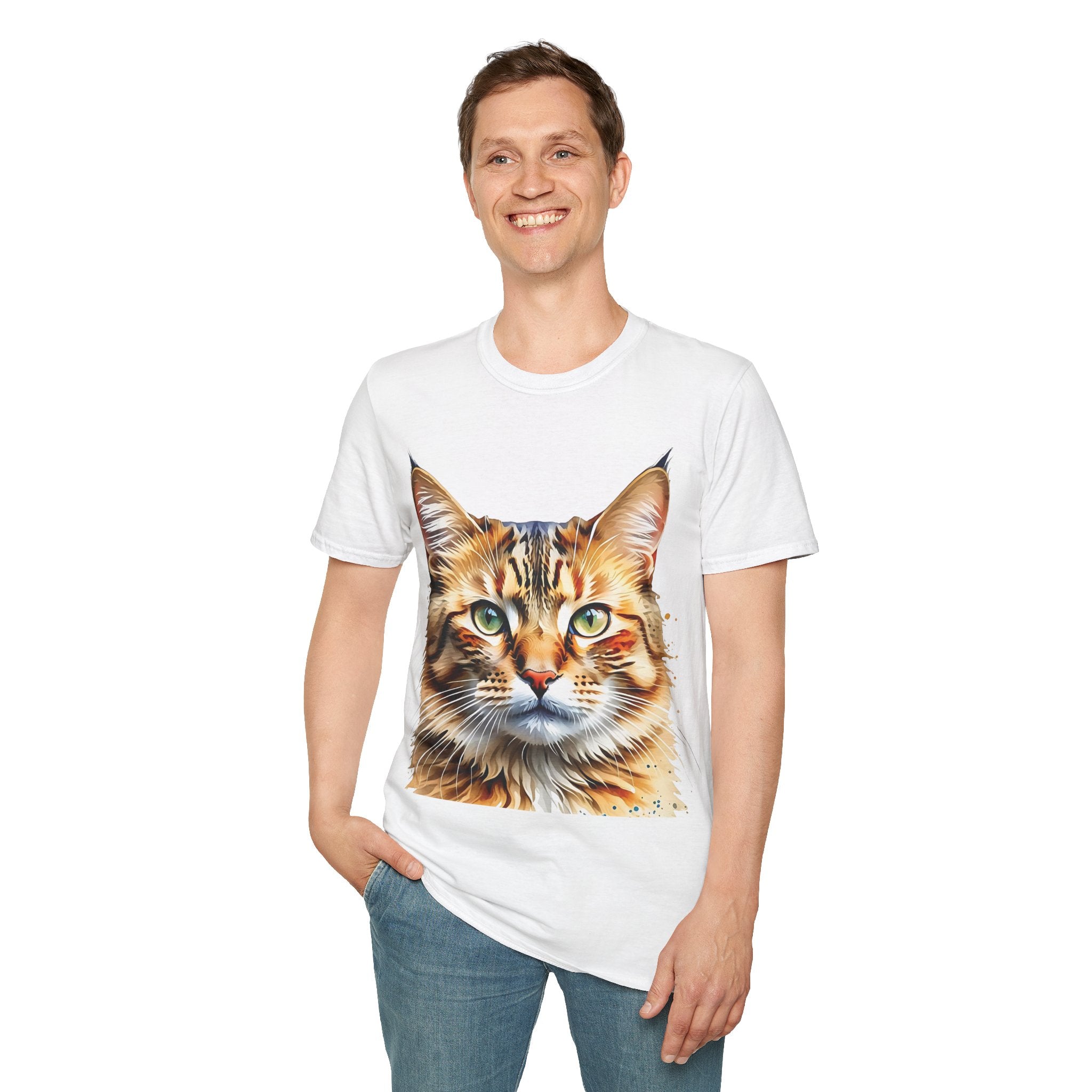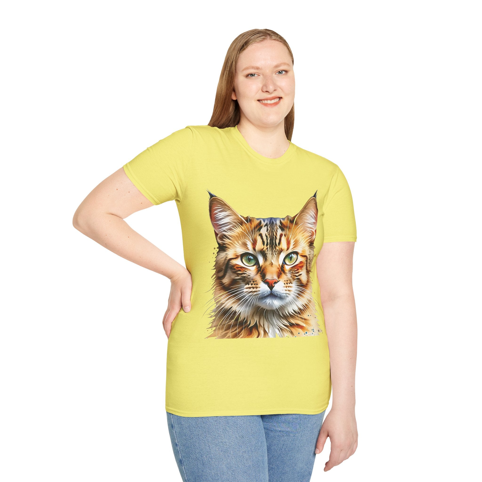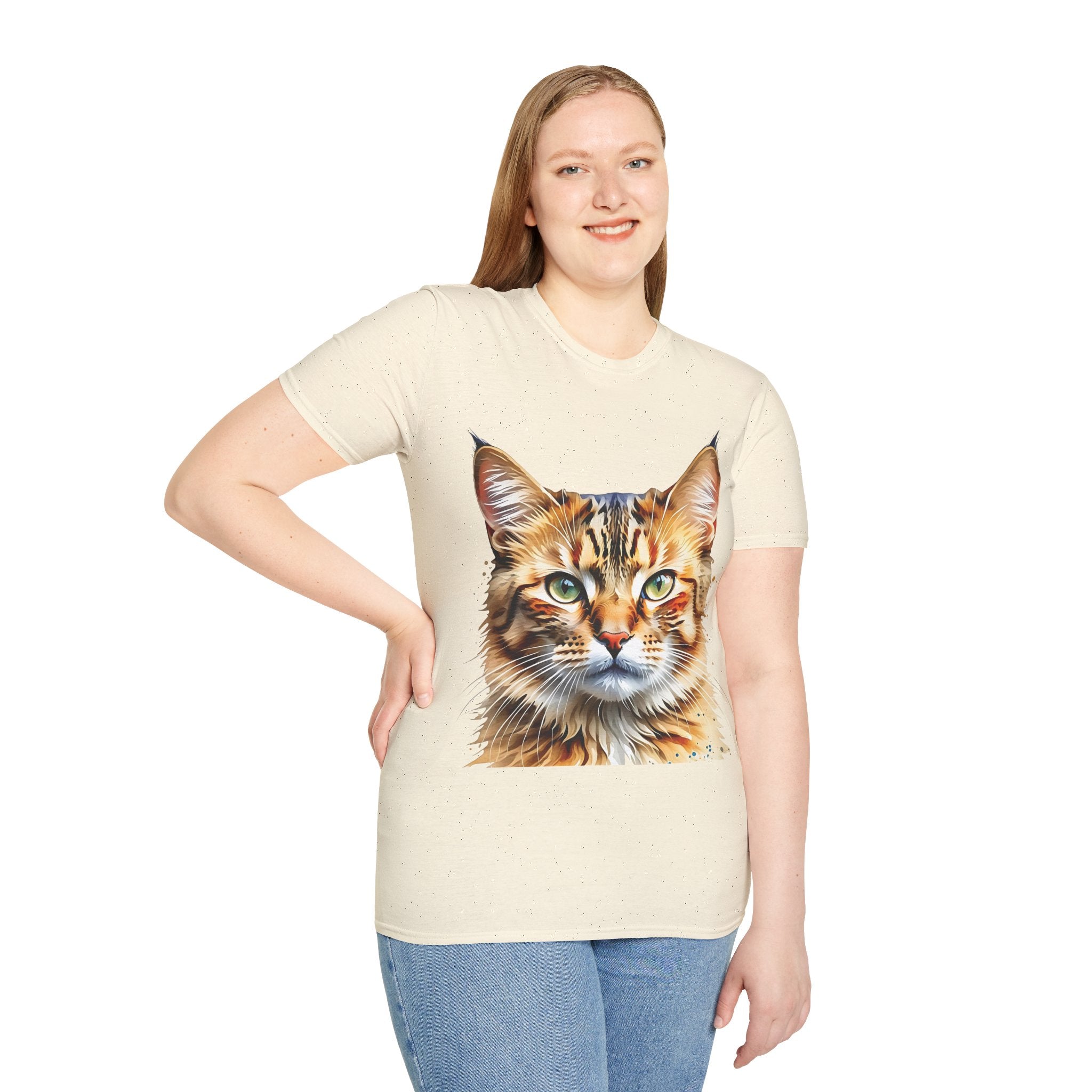 Indulge in the artistic charm of our Watercolor Cat Portrait Unisex Cotton T-Shirt. This lightweight shirt features a vivid painterly cat illustration with warm amber eyes and layered fur tones, creating a captivating effect. Perfect for animal lovers and art enthusiasts, this shirt seamlessly integrates into your daily life, invoking a sense of coziness and companionship. Crafted from 100% ring-spun cotton for a soft and breathable feel, this shirt boasts a clean silhouette, ribbed collar, and Oeko-Tex certification for comfort and safety. Wear it on various occasions, from relaxed weekends to casual outings, and make a subtle yet striking statement.