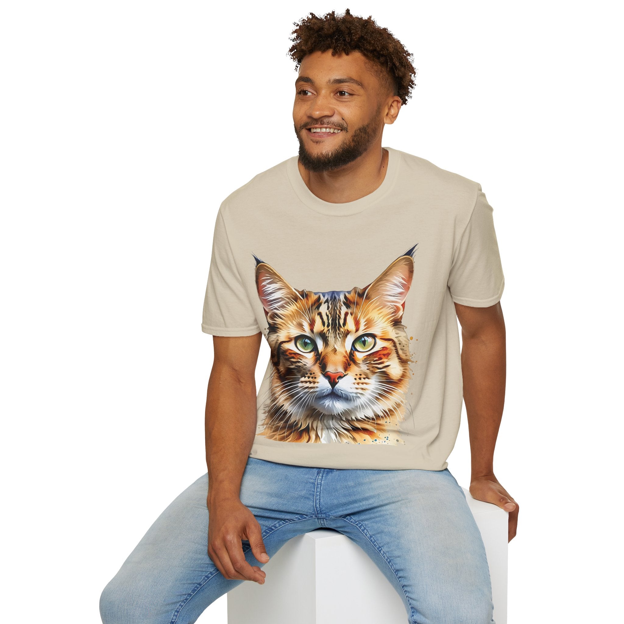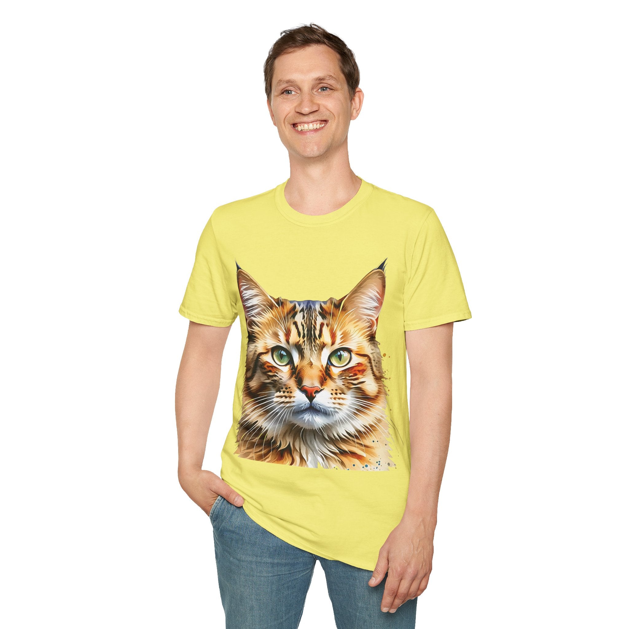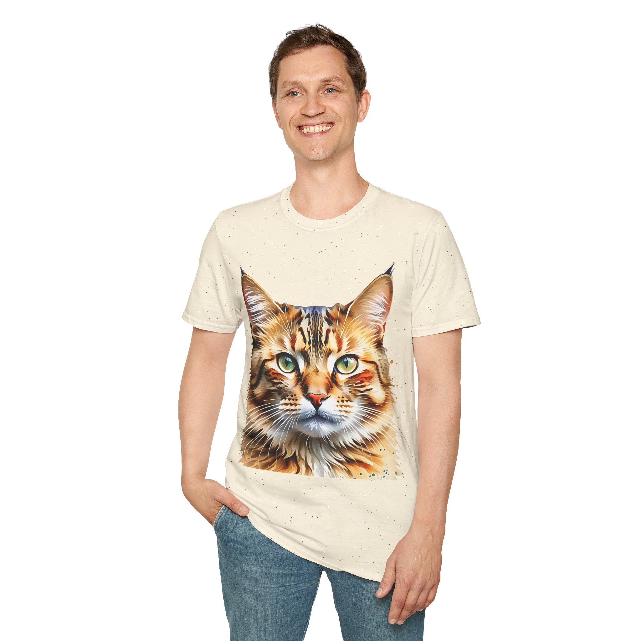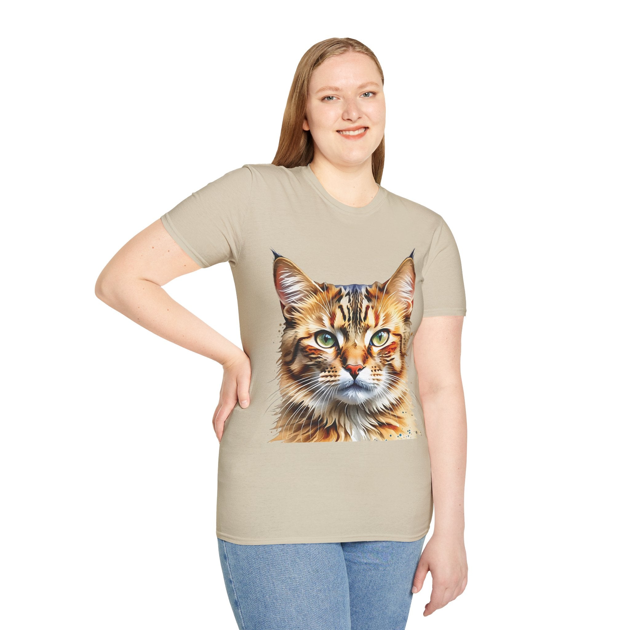 Indulge in the artistic charm of our Watercolor Cat Portrait Unisex Cotton T-Shirt. This lightweight shirt features a vivid painterly cat illustration with warm amber eyes and layered fur tones, creating a captivating effect. Perfect for animal lovers and art enthusiasts, this shirt seamlessly integrates into your daily life, invoking a sense of coziness and companionship. Crafted from 100% ring-spun cotton for a soft and breathable feel, this shirt boasts a clean silhouette, ribbed collar, and Oeko-Tex certification for comfort and safety. Wear it on various occasions, from relaxed weekends to casual outings, and make a subtle yet striking statement.