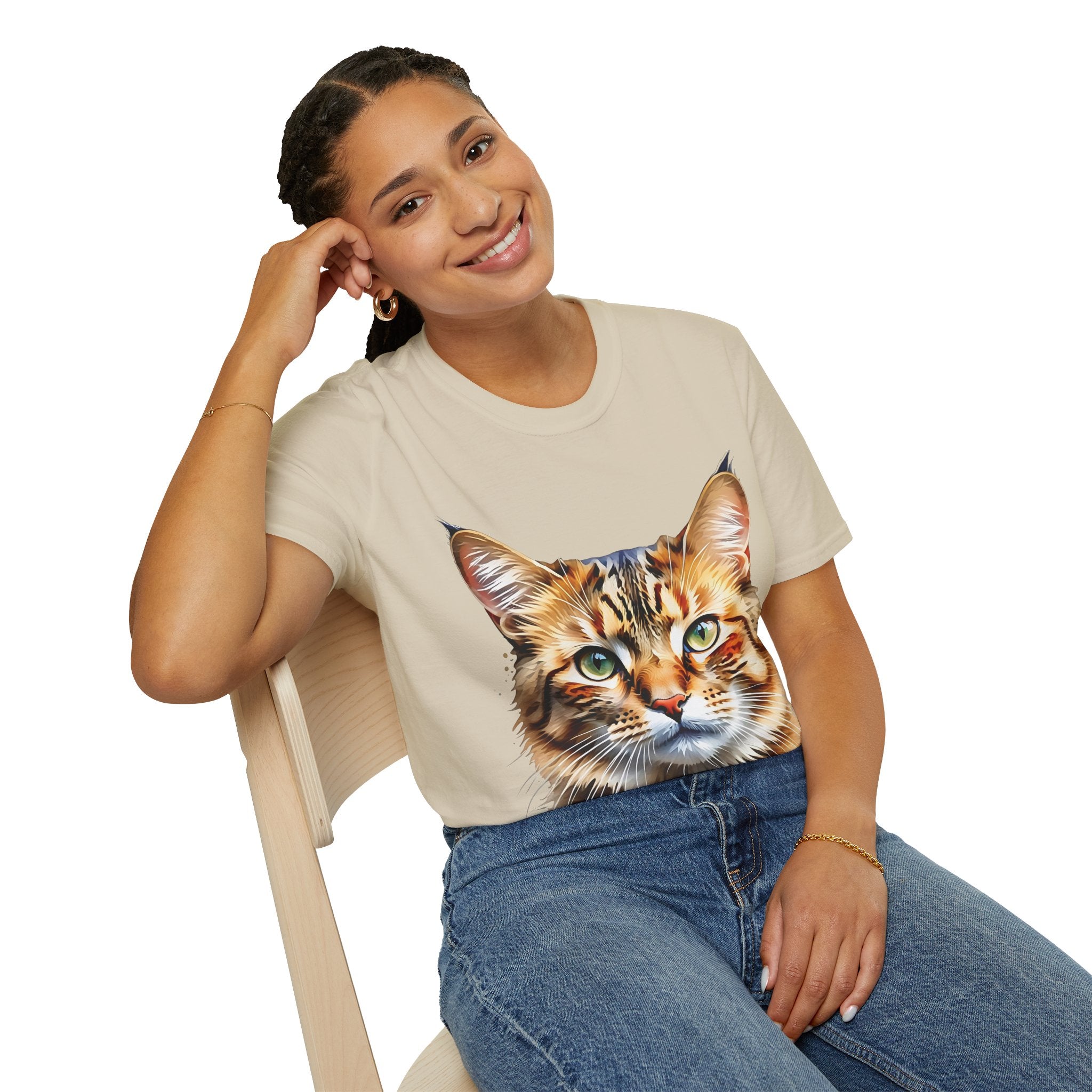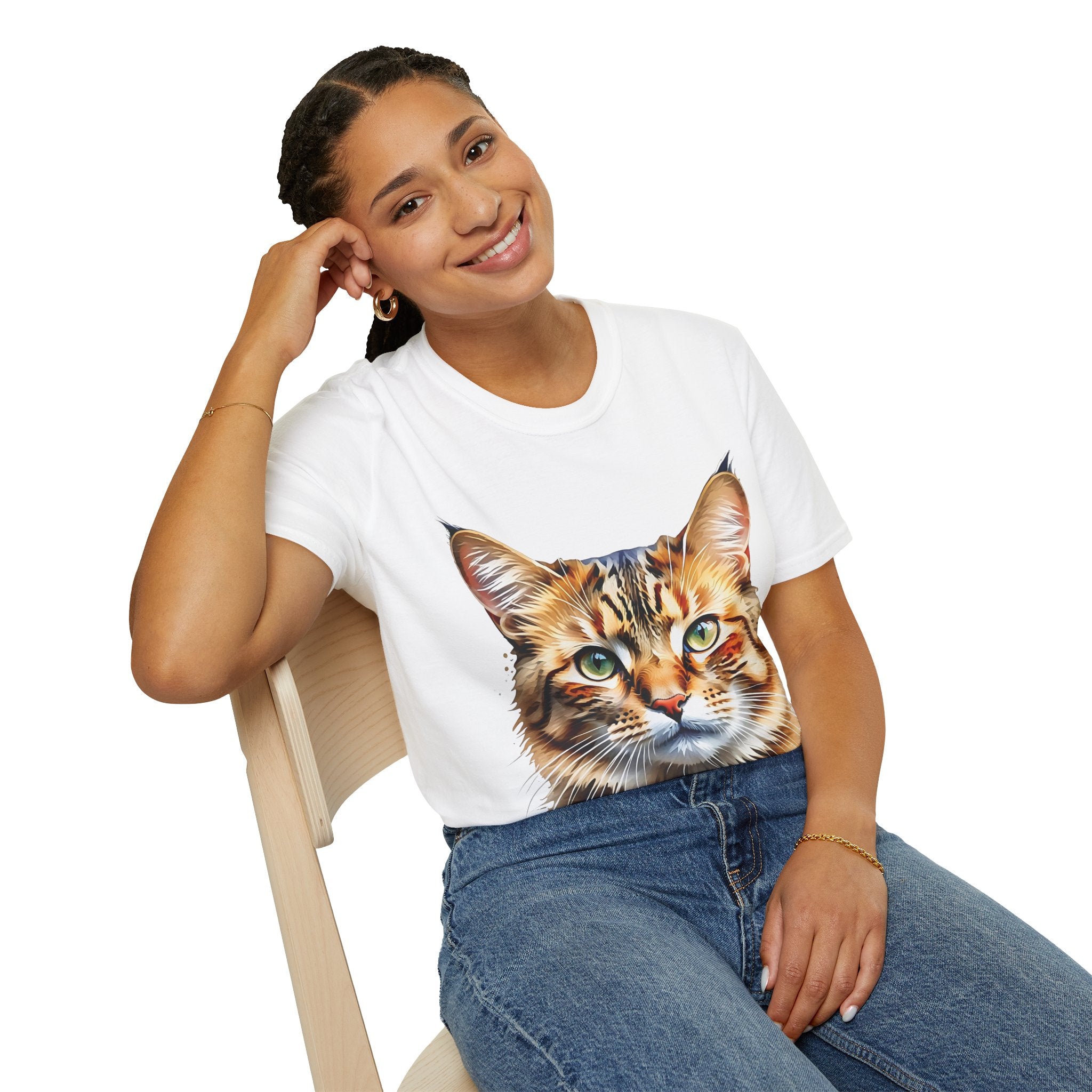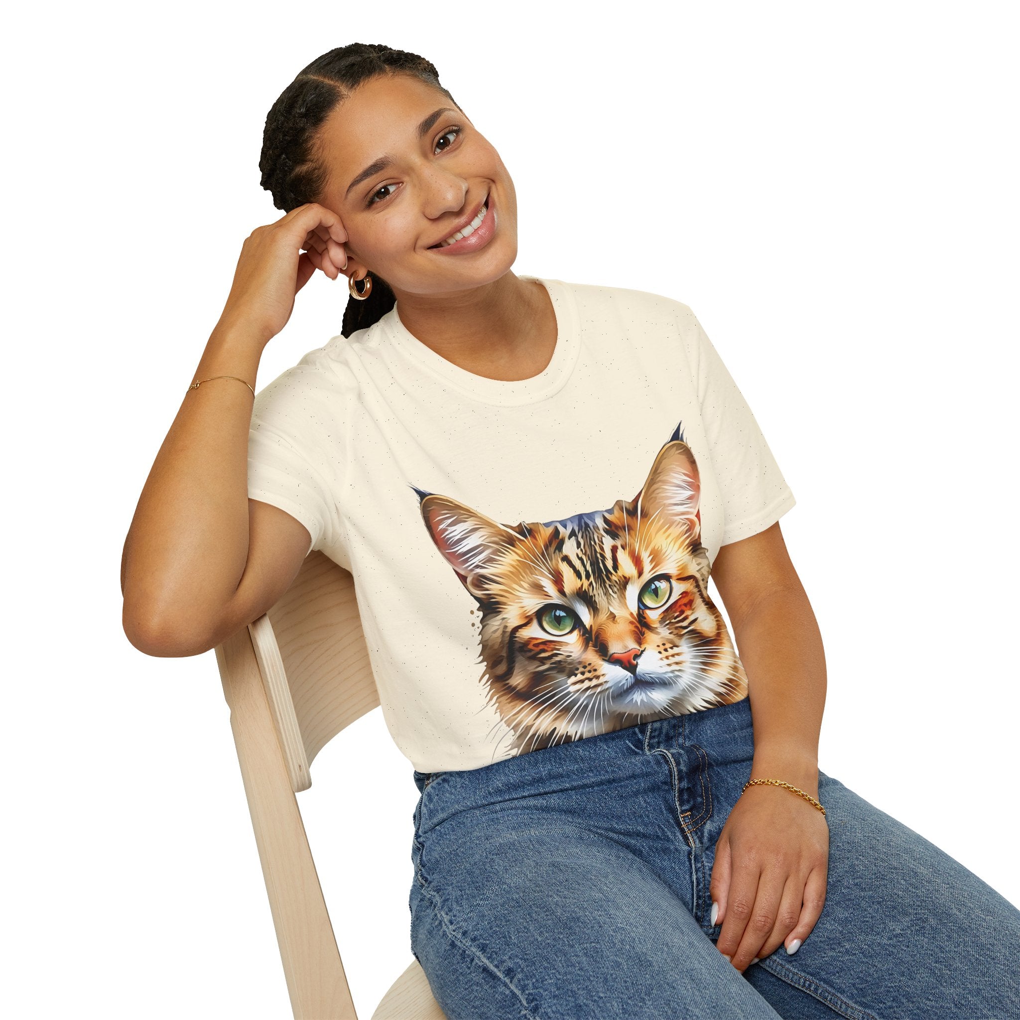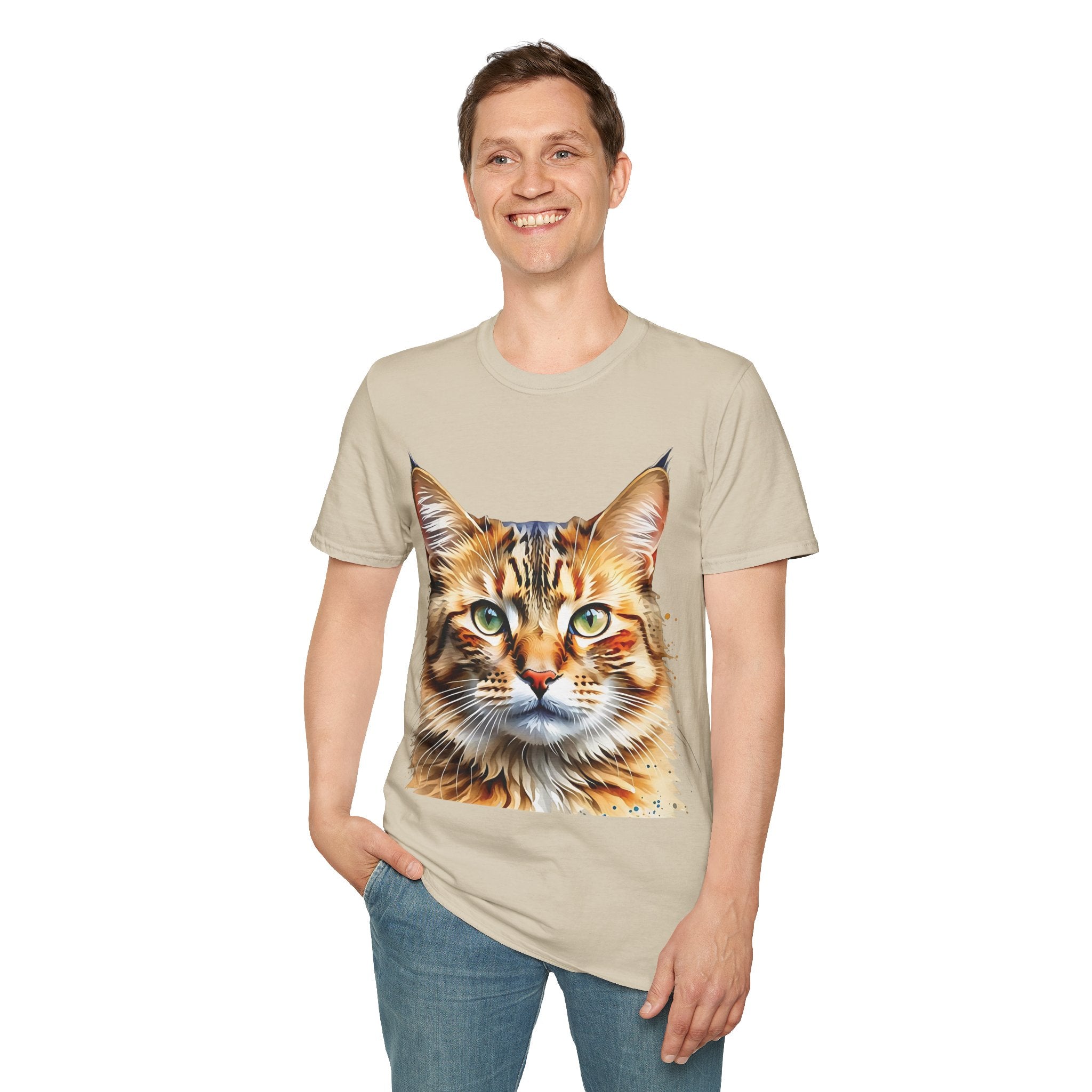 Indulge in the artistic charm of our Watercolor Cat Portrait Unisex Cotton T-Shirt. This lightweight shirt features a vivid painterly cat illustration with warm amber eyes and layered fur tones, creating a captivating effect. Perfect for animal lovers and art enthusiasts, this shirt seamlessly integrates into your daily life, invoking a sense of coziness and companionship. Crafted from 100% ring-spun cotton for a soft and breathable feel, this shirt boasts a clean silhouette, ribbed collar, and Oeko-Tex certification for comfort and safety. Wear it on various occasions, from relaxed weekends to casual outings, and make a subtle yet striking statement.