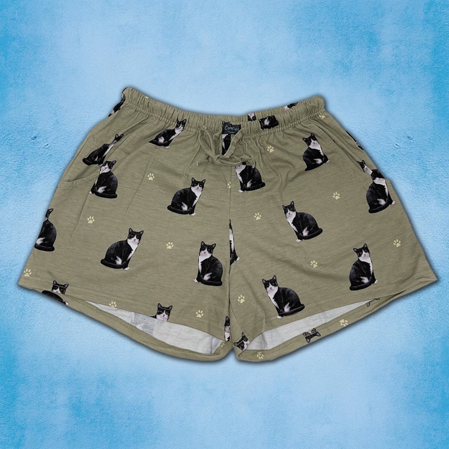 Express your feline affection with these charming Womens Black and White Cat Print Lounge Shorts. Crafted from soft, breathable fabric, featuring an elastic waistband for all-day comfort, deep side pockets, and a cute cat motif, these shorts are a perfect blend of style and functionality. Whether youre relaxing at home, running errands, or enjoying a summer getaway, these shorts are an essential addition to your wardrobe. Treat yourself or a fellow pet enthusiast to these delightful shorts, ideal for various occasions like birthdays or Mothers Day. Shop now at PrimePetGifts.com, the ultimate destination for pet lovers.