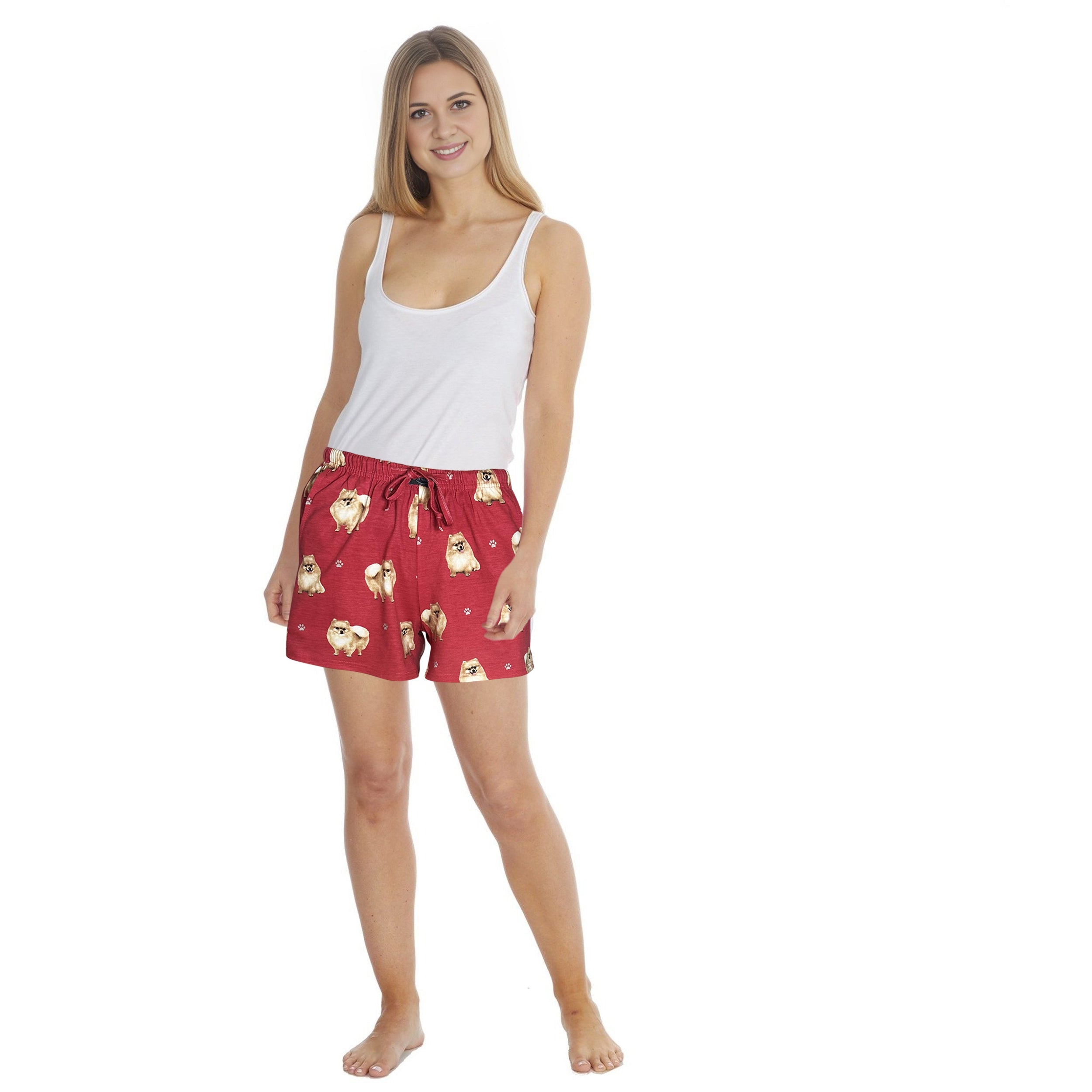 Womens Dog Print Lounge Shorts – Comfy Elastic Waist Shorts with Pockets